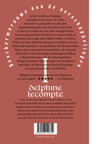 In het hoofd van Delphine Lecompte is het nooit stil. Waar die ongebreidelde energie normaal een uitweg vindt in haar gedichten, wijdt ze zich nu aan proza. In korte stukken, waaruit nrc, De Morgen en humo gretig publiceerden, geeft ze haar wilde meningen over wat ze om zich heen ziet gebeuren en dist ze, nietsontziend en gespeend van alle gêne, verhalen op over haar markante leven.