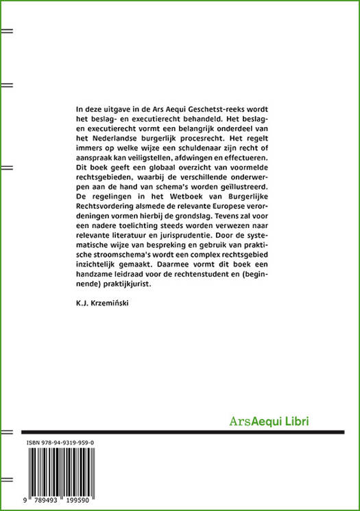 In deze uitgave in de Ars Aequi Geschetst-reeks wordt het beslag- en executierecht behandeld. Het beslag- en executierecht vormt een belangrijk onderdeel van het Nederlandse burgerlijk procesrecht. Het regelt immers op welke wijze een schuldenaar zijn recht of aanspraak kan veiligstellen, afdwingen en effectueren. Dit boek geeft een globaal overzicht van voormelde rechtsgebieden, waarbij de verschillende onderwerpen aan de hand van schema's worden geïllustreerd. De regelingen in het Wetboek van Burgerlijke Rechtsvordering alsmede de relevante Europese verordeningen vormen hierbij de grondslag. Tevens zal voor een nadere toelichting steeds worden verwezen naar relevante literatuur en jurisprudentie. Door de systematische wijze van bespreking en gebruik van praktische stroomschema's wordt een complex rechtsgebied inzichtelijk gemaakt. Daarmee vormt dit boek een handzame leidraad voor de rechtenstudent en (beginnende) praktijkjurist.
