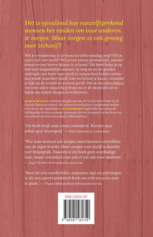 Dit boek helpt je op een heel toegankelijke manier op weg en zet de gouden stelregels om beter voor jezelf te zorgen heel helder uiteen: ken jezelf, waardeer jezelf, kies en bemin je keuze, verander je kijk op de wereld en verwen jezelf.