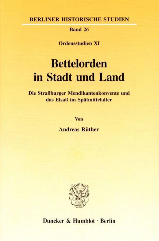 Das spätmittelalterliche Straßburg beherbergte allein sechs Klöster der Bettelorden in seinen Mauern: Franziskaner und Dominikaner ließen sich im ersten Viertel des dreizehnten Jahrhunderts nieder, Augustiner-Eremiten, Karmeliter und Sackbrüder siedelten sich in der zweiten Jahrhunderthälfte an, und bis zur Jahrhundertwende wurden die Wilhelmiten in der oberrheinischen Metropole ansässig. Die bettelnden Brüder waren aber nicht nur in der Freien Reichsstadt vertreten, sie erschlossen auch das in sog. Termineibezirke eingeteilte Elsaß durch ein Netz von Außenstationen und Absteigequartieren. Mit der Ausbildung dieses Terminierwesens entstand während des vierzehnten und fünfzehnten Jahrhunderts im unterelsässischen Territorium ein regionaler Wirkungsbereich für die Ordenshäuser: In zunehmendem Maße verließen die Religiosen den unmittelbaren Stadtraum und durchwanderten die umliegenden Gebiete, predigten an besonderen Stellen zu bestimmten Zeiten, gewannen Anhänger und Nachwuchs, sammelten Almosen und Schenkungen. Die konstante Vergabung von Getreide- und Geldrenten vor allem an Prediger und Barfüßer, aber auch an Einsiedel- und Frauenbrüder durch Bauern und Landbewohner verdeutlicht die Kontinuität einer ländlichen Existenz der Bettelmönche. Durch die Ortsbestimmung dieser Zuwendungen war es möglich, Verdichtungen der Liegenschaften zu erkennen, das seelsorgerliche Ausgreifen in die agrarische Umgebung zu verfolgen und eine Einbettung in das Sozialgefüge der Landbevölkerung festzustellen. Waren die Fratres anfangs mit ihrer Lebensweise an die städtischen Zentren gebunden, so entwickelte sich das Landgebiet mit zeitlicher Verzögerung zu einer Zone, in der ein mendikantisches Dasein ebenso möglich werden konnte. Zwar blieb die urbane Lebenswelt der nächstgelegene Bewegungsraum der bettelnden Brüder, doch das rurale Umland wurde schon durch die mit Bettel und Predigt verbundene Mobilität zum gleichgewichtigen Tätigkeitsfeld der Konvente.