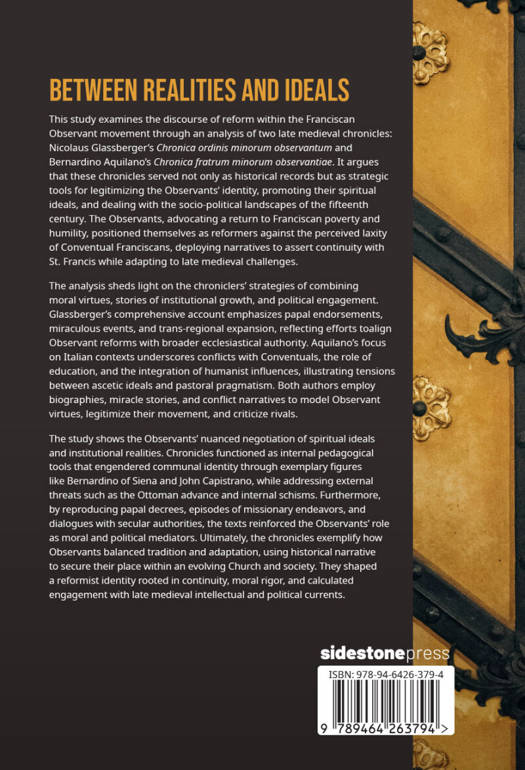The study shows the Observants' nuanced negotiation of spiritual ideals and institutional realities. Chronicles functioned as internal pedagogical tools that engendered communal identity through exemplary figures like Bernardino of Siena and John Capistrano, while addressing external threats such as the Ottoman advance and internal schisms. Furthermore, by reproducing papal decrees, episodes of missionary endeavors, and dialogues with secular authorities, the texts reinforced the Observants' role as moral and political mediators. Ultimately, the chronicles exemplify how Observants balanced tradition and adaptation, using historical narrative to secure their place within an evolving Church and society. They shaped a reformist identity rooted in continuity, moral rigor, and calculated engagement with late medieval intellectual and political currents.