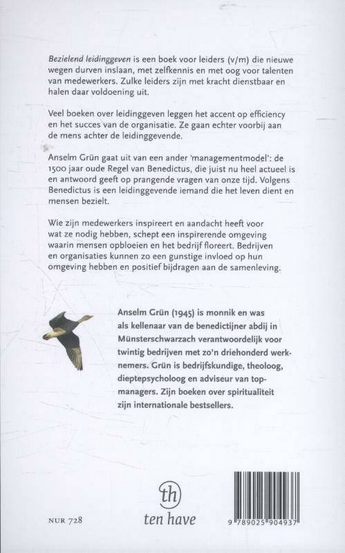 'Bezielend leidinggeven' is een standaardwerk op het gebied van leidinggeven. Anselm Grün gaat uit van de 1500 jaar oude Regel van Benedictus als managementmodel. Volgens Benedictus is een leidinggevende iemand die het leven dient en mensen bezielt. Zelfkennis, mensenkennis, creativiteit en fantasie zijn hierbij voorwaarden.