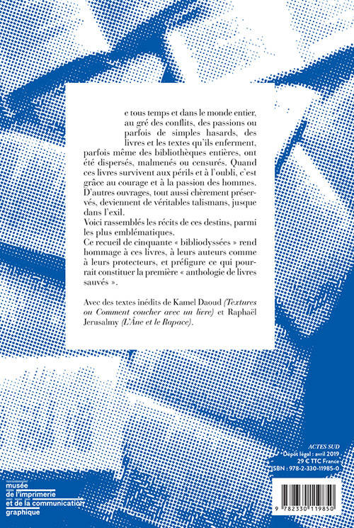 Ce recueil de cinquante « bibliodyssées » rend hommage à ces livres, à leurs auteurs comme à leurs protecteurs, et préfigure ce qui pourrait constituer la première « anthologie de livres sauvés ».