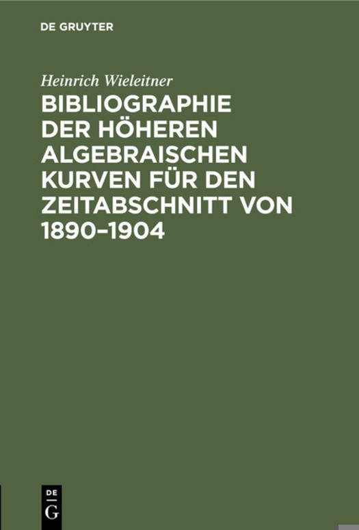 4. Bibliographie Der Höheren Algebraischen Kurven Für Den Zeitabschnitt Von 1890-1904