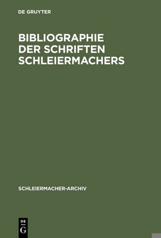 Bibliographie Der Schriften Schleiermachers
