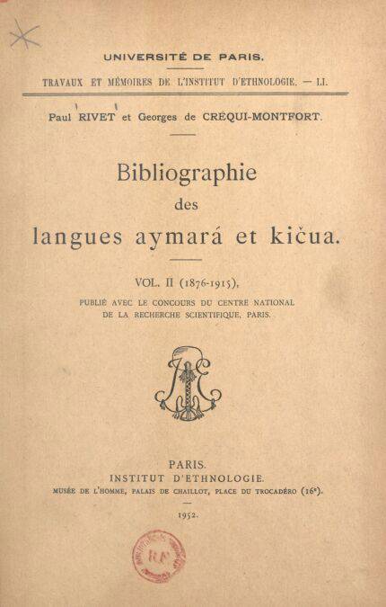 4. Bibliographie des langues aymará et kičua (2) 1876-1915
