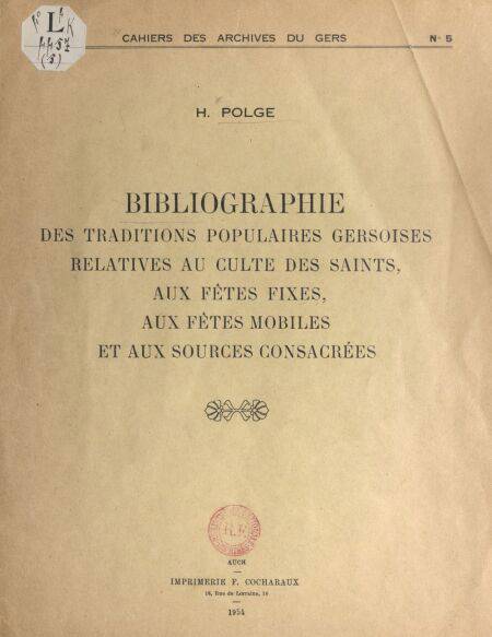 5. Bibliographie des traditions populaires gersoises relatives au culte des saints, aux fêtes fixes, aux fêtes mobiles et aux sources consacrées