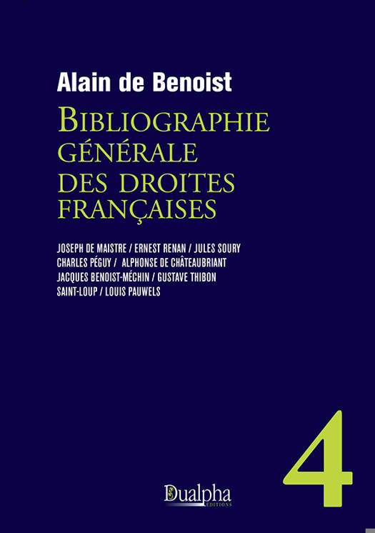 (volume 4) Joseph de Maistre – Ernest Renan – Jules Soury – Charles Péguy – Alphonse de Châteaubriant – Jacques Benoist-Méchin – Gustave Thibon – Saint-Loup – Louis Pauwels – 792 pp
