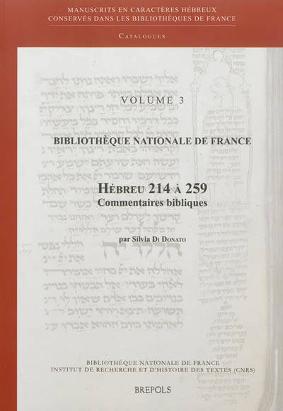 Manuscrits en caractères hébreux conservés dans les bibliothèques de France