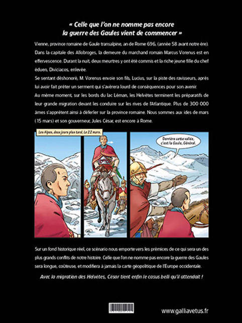 Celle que l'on nomme pas encore la guerre des Gaules, va commencer ! Vienne, 58 a. J.-C. Dans la capitale des Gaulois Allobroges, la demeure de M. Vorenus, un riche marchand romain, est en effervescence. Durant la nuit, deux meurtres ont été commis et la jeune et riche fille du chef éduen Diviciacos, enlevée. Déshonoré, Vorenus envoi son fils, Lucius, sur la piste des ravisseurs, après avoir fait prêter au jeune homme un serment qui s'avèrera lourd de conséquences pour son avenir. Pendant ce temps, sur les bords du lac Léman, les Helvètes terminent les préparatifs de leur grande migration. Plus de 300 000 personnes s'apprêtent à déferler sur la province romaine. Nous sommes le 15 mars et le gouverneur de la province, Jules César, est encore à Rome.