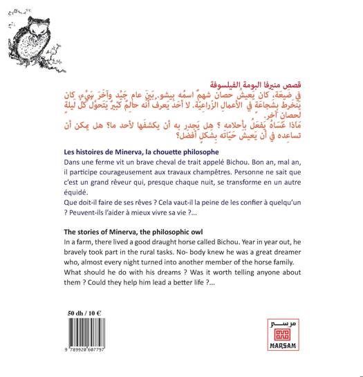 Les histoires de Minerva la chouette philosopheDans une ferme vit un brave cheval de trait appelé Bichou Bon an mal an il participe courageusement aux travaux champêtres Personne ne sait que c'est un grand rêveur qui presque chaque nuit se transforme en un autre chevalQue doitil faire de ses rêves Cela vautil la peine de les confier à quelqu'un Peuventils l'aider à mieux vivre sa vie Ouvrage en français anglais et arabeThe stories of Minerva the philosophic owlOn a farm lives a brave draft horse called Bichou Year in year out he courageously participates in the farmwork No one knows that he is a great dreamer who almost every night transforms into another horseWhat should he do with his dreams Is it worth sharing them with someone Can they help him live his life betterFrench English and Arabic edition
