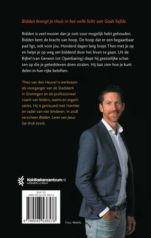 ‘Bidden van licht’ is een bijbels dagboek voor 100 dagen van Theo van den Heuvel over het gebed. Lichtvoetig loopt Theo van den Heuvel 100 dagen met je op. Taalvaardig stimuleert hij je met inspirerende lessen over het gebed. Uit de Bijbel diept hij wijze inzichten op die je enthousiast maken om biddend door het leven te gaan. Het onderwijs van Jezus is daarbij een bron van wijsheid en kracht. Al biddend valt veel zwaarte weg en wordt je leven een stuk lichter. Een mooie quote, opdracht en zegenspreuk zorgen ervoor dat je elke dag vordert op je gebedsreis.