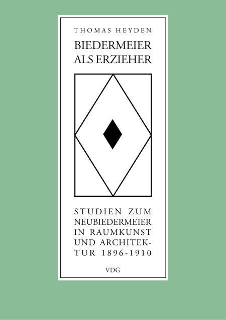 "Biedermeier als Erzieher" stellt die Rezeptionsgeschichte des als bürgerlich verstandenen Stiles sowie charakteristische Beispiele neubiedermeierlicher Raum- und Baukunst von Bruno Paul, Paul Schultze-Naumburg und vielen anderen Gestaltern und Architekten vor. Besondere Aufmerksamkeit gilt der Breitenwirkung dieses Stilphänomens, das sich vom Kunstgewerbe bis zur Gartenkunst, von der Gebrauchsgraphik bis zum Kabarett beobachten läßt.