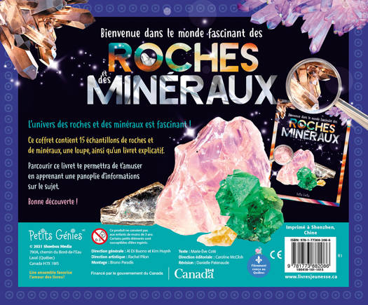 Ce grand coffret contient 15 échantillons de roches et minéraux, une loupe, ainsi qu’un livret explicatif. Parcourir ce livret te permettra de t’amuser en apprenant une panoplie d’information sur le sujet!