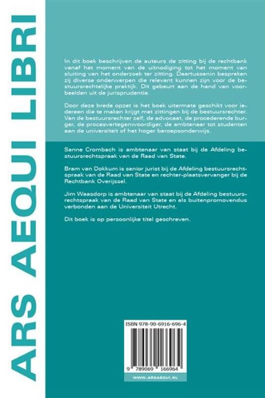 Door deze brede opzet is het boek uitermate geschikt voor iedereen die te maken krijgt met zittingen bij de bestuursrechter. Van de bestuursrechter zelf, de advocaat, de procederende burger, de procesvertegenwoordiger, de ambtenaar tot studenten aan de universiteit of het hoger beroepsonderwijs.