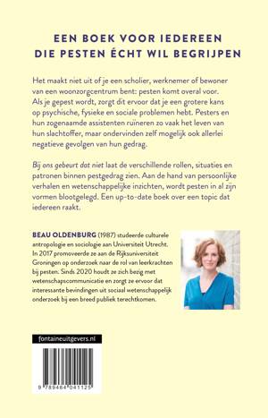 Kleineren, negeren, uitschelden of schoppen: pesten kent allerlei verschillende vormen en het komt zeker niet alleen onder kinderen voor. Een op de acht werknemers (500.000 werknemers!) wordt jaarlijks slachtoffer van pesten op de werkvloer, online wordt er volop gepest en in verzorgingshuizen is buitensluiten en bespotten onder bewoners geen uitzondering. Het maakt niet uit of je een scholier, werknemer of bewoner van een woonzorgcentrum bent: als je gepest wordt, zorgt dit ervoor dat je een grotere kans op psychische, fysieke en sociale problemen hebt. Pesters en hun zogenaamde assistenten ruïneren zo vaak het leven van hun slachtoffer, maar ondervinden zelf ook allerlei negatieve gevolgen van hun gedrag. Bij ons gebeurt dat niet laat de verschillende rollen, situaties en patronen binnen pestgedrag zien. Aan de hand van persoonlijke verhalen en wetenschappelijke inzichten, wordt pesten in al zijn vormen blootgelegd. Een up-to-date boek over een topic dat iedereen raakt.