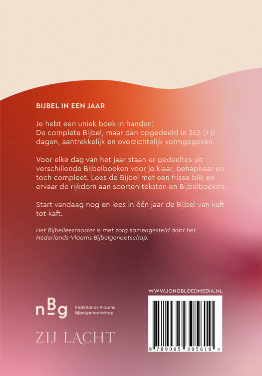 Lees de Bijbel in één jaar met deze speciale NBV21-uitgave van Zij Lacht in een aantrekkelijk jasje. Twee jaar geleden las Liza Kruit (oprichter van Zij Lacht) voor het eerst de hele Bijbel. Voor die tijd leek het haar een te grote opgave en ook tijdens het lezen vond ze het soms moeilijk om het lezen vol te houden. Voor veel vrouwen is dit herkenbaar, terwijl het ontzettend waardevol is om de gehele Bijbel te lezen. Daar is iets op bedacht: we doen het met elkaar! En speciaal hiervoor kwam de prachtige Zij Lacht NBV21 in een jaar tot stand.