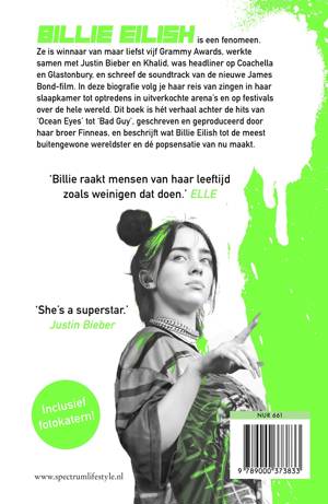 In deze biografie volg je Billies reis van zingen in haar slaapkamer tot optredens in uitverkochte arena’s en op festivals over de hele wereld. Dit boek is hét verhaal achter de hits van ‘Ocean Eyes’ tot ‘Bad Guy’, geschreven en geproduceerd door haar broer Finneas, en beschrijft wat Billie Eilish tot de meest buitengewone wereldster en dé popsensatie van nu maakt.