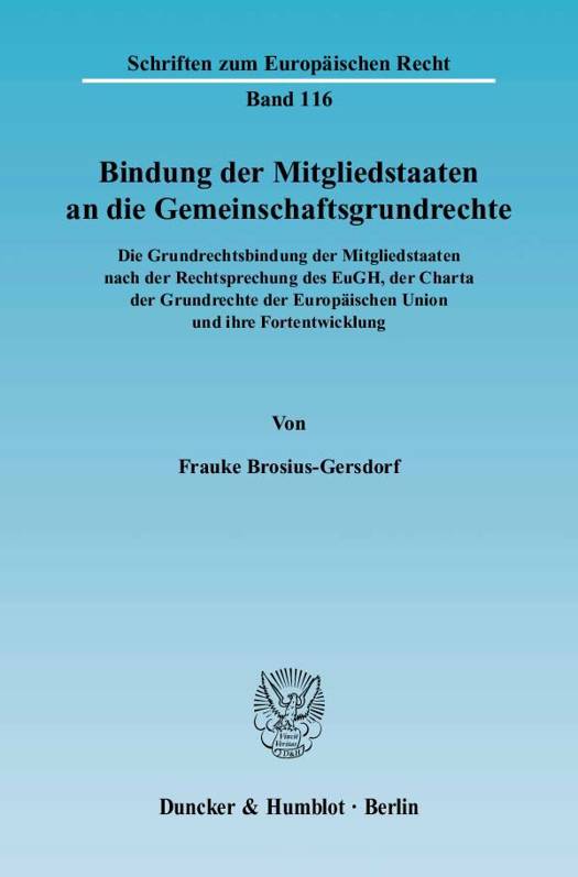 Die Diskussion über die Bindung der Mitgliedstaaten an die Gemeinschaftsgrundrechte wurde durch den Europäischen Verfassungsvertrag neu entfacht. Sie entzündet sich an der Horizontalvorschrift des Art. II-111 Abs. 1 Satz 1 VVE, die den Anwendungsbereich der Charta für die Mitgliedstaaten mit einer Formulierung umschreibt, die der EuGH lediglich für einen Teilbereich der Grundrechtsbindung der Mitgliedstaaten verwendet.Frauke Brosius-Gersdorf widmet sich in ihrer Arbeit der Reichweite der Bindung der Mitgliedstaaten an die Gemeinschaftsgrundrechte und ihren Funktionen. In einem ersten Schritt gibt sie einen Überblick über die Rechtsprechung des EuGH zur Grundrechtsbindung der Mitgliedstaaten. Anschließend zeigt sie, dass Art. II-111 Abs. 1 Satz 1 VVE die Grundrechtsbindung der Mitgliedstaaten im Grundsatz übereinstimmend mit der Judikatur des EuGH regelt. In einem dritten Komplex unterbreitet die Autorin Vorschläge für eine Fortentwicklung der Bindung der Mitgliedstaaten an die Gemeinschaftsgrundrechte.
