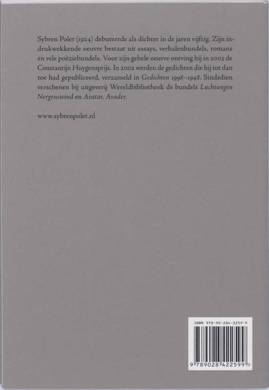 De poëzie van Sybren Polet is vitaler dan die van menig dichter die zijn kleinkind had kunnen wezen. In deze intense bundel definieert hij zichzelf als iemand 'die steeds opnieuw rechtop moet leren lopen', die leeft op het snijpunt van zijn eigen indiviuele leven en van ons krakend tijdsgewricht. Zijn poëzie brengt zijn en onze buitenwereld in een persoonlijke, dynamische taal bij de lezer naar binnen.