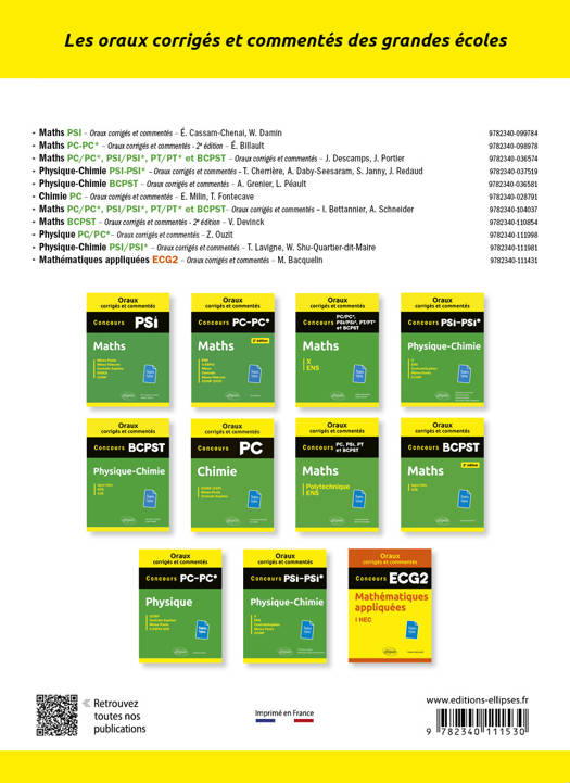 En complément des sujets corrigés les plus représentatifs des oraux de Biologie des filières BCPST, cet ouvrage propose :