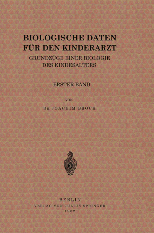 Grundzüge Einer Biologie Des Kindesalters Erster Band