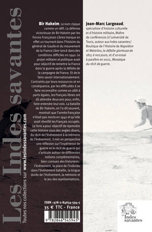 Bir Hakeim. Le nom claque comme un défi. La défense victorieuse de Bir Hakeim par les Forces Françaises Libres marque en effet un tournant dans l'histoire du général de Gaulle et du mouvement de la France Libre lancé dans des conditions difficiles en 1940. Le projet militaire et politique avait pour objectif de remettre la France dans la guerre après la défaite de la campagne de France. Et de le faire savoir internationalement. Contraints par leurs ressources et en conséquence, par les difficultés à se faire reconnaître comme un allié à parts égales, les Français libres ont dû attendre deux ans pour, enfin, faire entendre leur voix. La bataille de Bir Hakeim, on l'a dit souvent, montrait que l'armée française n'était pas morte en 1940 et qu'elle avait réveillé les Français occupés. Le livre a pour objectif de reprendre cette histoire sous des angles divers, du récit de l'événement à la mémoire de l'événement. Il met en perspective une réflexion sur l’expérience de guerre et le récit de guerre qui s’articule autour de différentes notions complémentaires, bien connues des historiens : l’événement, la place de l’individu dans l’événement-bataille, la longue durée de l’événement, la mémoire et le jeu des représentations.