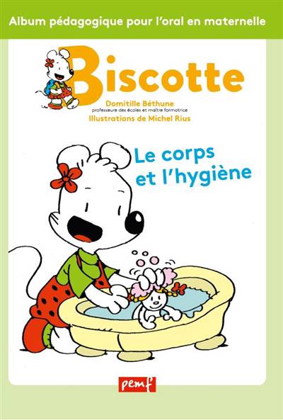 Biscotte, le corps et l’hygiène introduit un travail langagier sur ce thème en classe. L’objectif syntaxique visé sera l’entrée dans la phrase, ainsi que l’allongement de la phrase simple à l’oral. Les jeunes élèves seront invités à jouer au cacher-trouver ainsi qu’à laver une poupée en classe, comme le fait Biscotte. Ce livre formulera simplement ces actions en ciblant les noms et les verbes prioritaires.