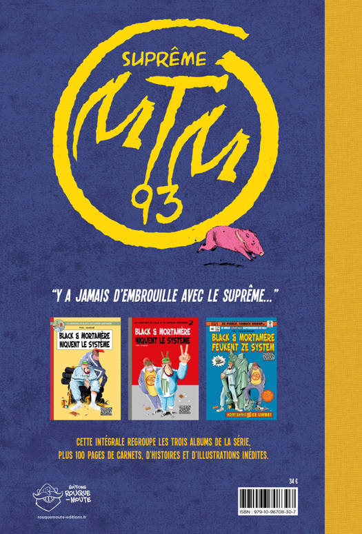 Black et le suprême Mortamère sont nés en 2002. L’idée était de glisser deux lascars du 9-3 – certains y verront un hommage au duo de rap français NTM – dans les BD d’E.P. Jacobs. Puis Pixel Vengeur les a fait évoluer dans les univers de Loisel, Vuillemin, Sfar, Trondheim, Charlier, Hubinon ou encore Moebius sur le ton de la parodie et du pastiche. L’intégrale de Black et Mortamère est une réédition deluxe de 256 pages internes qui réunit les trois premiers tomes, publiés en 2005, 2007 et 2010, enrichie d’une centaine de pages inédites : illustrations, planches, carnet de croquis, manga (Black et Mortamère atomisent le système), western (Cowboys Hip-hop)... Cet objet unique bénéficie d’une fabrication soignée : dos toilé, dorure, pelliculage mat et vernis sélectif. Disponible en édition limitée collector à 2000 exemplaires, il sublime le talent graphique et scénaristique de l’auteur. Pixel Vengeur, qui dessine régulièrement dans Psikopat, Fluide Glacial et Spirou, a obtenu le prix Schlingo à Angoulême en 2016 pour Les Trois petits cochons reloaded. Avec Fabcaro au scénario, il est également l’auteur de Gai-Luron sent que tout lui échappe (2016).
