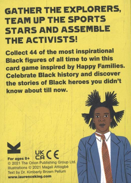A FAMILY CARD GAME with simple gameplay that is quick and easy to learn CELEBRATE BLACK HISTORY and discover new Black heroes you didn't know about till now BOLD AND COLOURFUL ILLUSTRATIONS on every card make it easy to recognize your favourite heroes DISCOVER MORE IN THE BOOKLET, from when Simone Biles first discovered gymnastics to how Queen Nzinga fought off Portuguese invaders