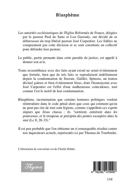 Les autorités ecclésiastiques de l'Eglise Réformée de France, dirigées par le pasteur Paul de Sarte et Lou Garoudy, ont décidé de se débarrasser du trop libéral pasteur José Carpentier. Les fidèles ne comprennent pas cette décision et se sont constitués en collectif pour défendre leur pasteur.