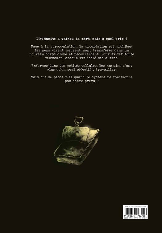 L'humanité a vaincu la mort, mais à quel prix ? Face à la surpopulation, la procréation est prohibée. Les gens vivent, meurent, sont transférés dans un nouveau corps cloné et recommencent. Pour éviter toute tentation, chacun vit isolé des autres. Enfermés dans des petites cellules, les humains n'ont plus qu'un seul objectif : travailler. Mais que se passe-t-il quand le système ne fonctionne pas comme prévu ?