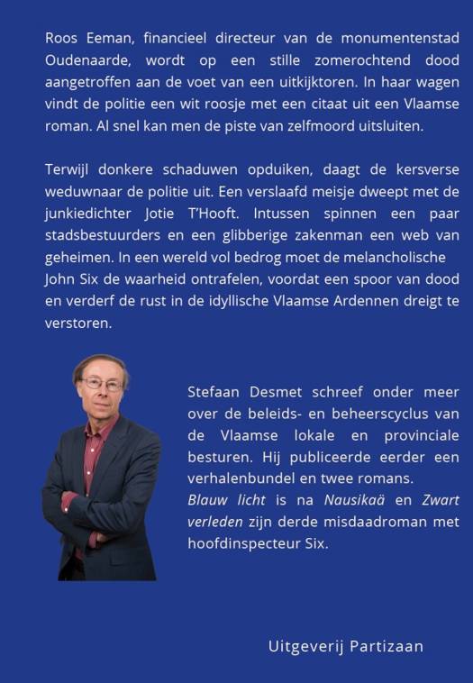 Stefaan Desmet schreef onder meer over de beleids- en beheerscyclus van de Vlaamse lokale en provinciale besturen. Hij publiceerde eerder een verhalenbundel en twee romans. Blauw licht is na Nausikaä en Zwart verleden zijn derde misdaadroman met hoofdinspecteur Six.