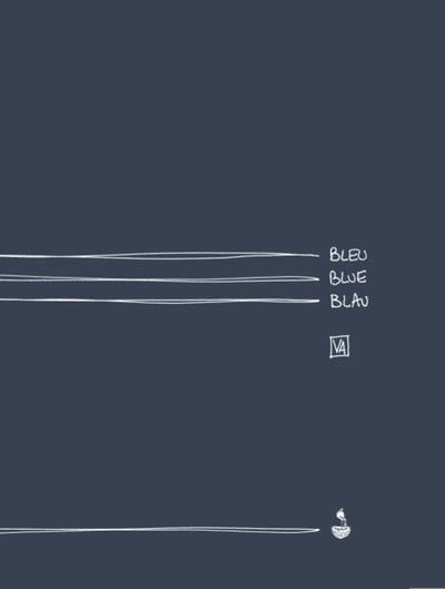 Beau livre-objet en accordéon qui présente des étoffes du monde entier et de différentes époques, toutes à dominante bleue.