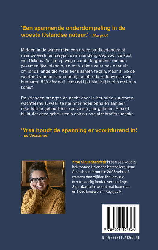 Midden in de winter reist een groep studievrienden af naar de Vestmannaeyjar, een eilandengroep voor de kust van IJsland. Ze zijn op weg naar de begrafenis van een gezamenlijke vriendin, en toch verheugen ze zich ook om sinds lange tijd weer eens samen te zijn. Maar al op de veerboot vinden ze een briefje achter de ruitenwisser van hun auto: Blijf hier niet.
