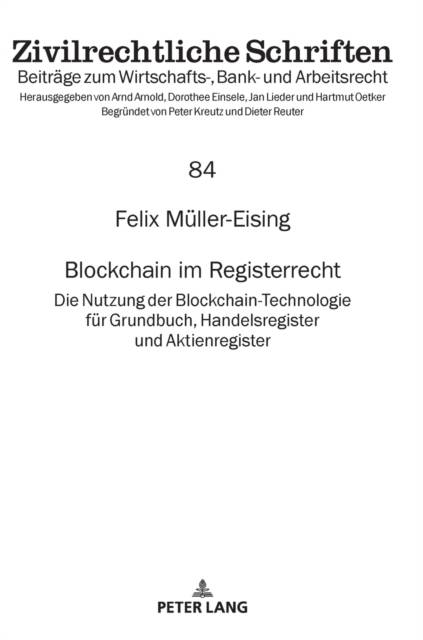 Felix Müller-Eising untersucht die Nutzung der Blockchain-Technologie für das Grundbuch, das Handelsregister und das Aktienregister. Zuerst wird eine Einführung in die allgemeine Funktionsweise einer Blockchain gegeben, wobei Token, kryptografische Schlüssel, Smart Contracts und Konsensmechanismen wie Proof-of-Work und Proof-of-Stake erläutert werden. Danach werden dezentrale und zentrale Einsatzmöglichkeiten einer Blockchain für die Register untersucht. Er kommt zu dem Ergebnis, dass sowohl das Grundbuch als auch das Handelsregister durch eine Blockchain keinen deutlichen Mehrwert erhalten würden. Dagegen habe die Tokenisierung von Aktien in einem blockchainbasierten Aktienregister einige Vorteile, die den Einsatz einer Blockchain rechtfertigen würden.