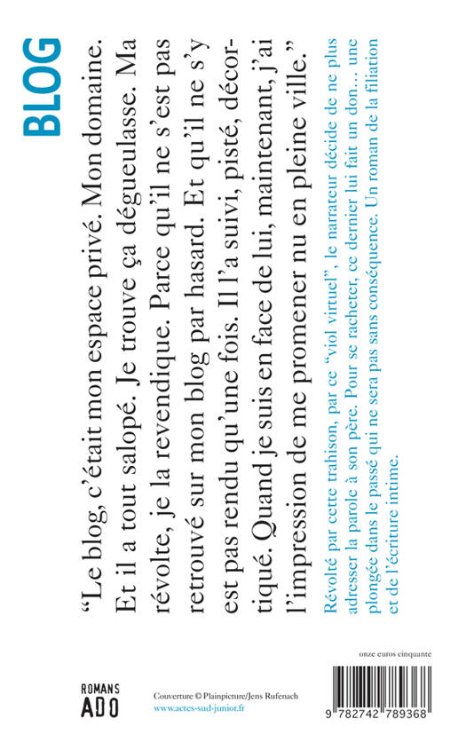 Quand le narrateur découvre que son père espionne son blog, cette révélation lui fait l'effet d'une trahison, d'un « viol virtuel ». Révolté, il décide de ne plus lui adresser la parole. Pour se racheter, son père lui fait un don... une plongée dans le passé qui ne sera pas sans conséquence. Un roman généreux sur la filiation et l'écriture intime.