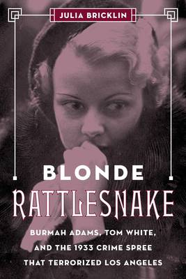 Blond Rattlesnake reveals the events that brought Adams and White together and details the crime spree they committed in the sweltering hot days and nights of Los Angeles in the height of the Great Depression. It describes the terror of citizens in their path and the outrage they directed at the female half of the duo. Politicians exploited Burmah's incarceration and trial for their own purposes as the press battled for scoops about the "Blonde Rattlesnake" and created sensation while trying to make sense of her crimes.