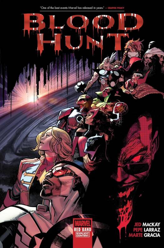 It's an event like no other...now available in an oversized, gorier, more violent "Red Band" version stained with buckets of blood! As the skies grow dark, an army of vampires stalks the land by day. Now, Marvel's greatest heroes must assemble to hold back an eternal night that threatens to consume the entire world in a wave of scarlet and chaos. Who will bite it?