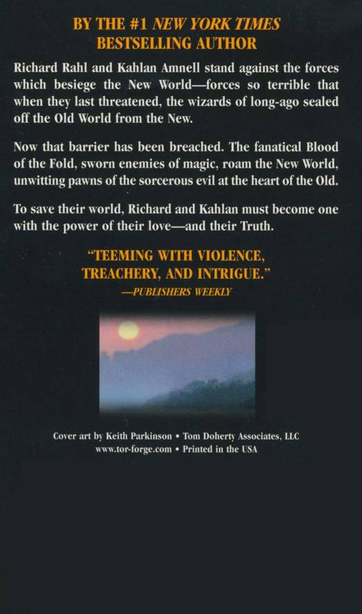 In a world as rich an real as our own, Richard Rahl and Kahlan Amnell stand against the ancient forces which besiege the New World--forces so terrible that when they last threatened, they could only be withstood by sealing of the Old world from whence they came. Now the barrier has been breached, and the New World is again beset by their evil power.
