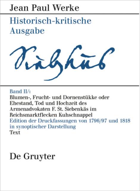 Siebenkäs ist Jean Pauls dritter größerer Roman. Er erschien erstmals 1796/97 in drei Bänden (D1) und enthielt in vieler Hinsicht Neues: Es ist der erste große Eheroman der deutschen Literatur und führt mit dem Figurenpaar Siebenkäs / Leibgeber auch die ersten Doppeltgänger ein. Die Geschichte des titelgebenden Helden, Firmian Stanislaus Siebenkäs, besteht aus zwei Teilen, die durch den Wendepunkt seines Scheintodes miteinander verknüpft sind. Dieser ermöglicht die Auferstehung des Armenadvokaten noch zu dessen Lebzeiten und erlöst ihn damit aus der Enge seiner Ehe und aus den beschränkten Verhältnissen der fiktiven Kleinstadt Kuhschnappel. In der Gegenwelt von Fantaisie, einer nahe Bayreuth gelegenen Parklandschaft, findet er in der Figur der Natalie eine Seelenverwandte - ebenso wie seine in Kuhschnappel verbliebene Witwe Lenette im Schulrat Stiefel. Doch ist das neue Glück nur von kurzer Dauer: Lenette stirbt wenig später im Kindbett und Siebenkäs' weiteres Schicksal bleibt ambivalent. Dies gilt auch für die 1818 erschienene, umgearbeitete und um einen Band erweiterte zweite Auflage des Romans (D2), die bisher als Grundlage nahezu aller späteren Ausgaben diente.