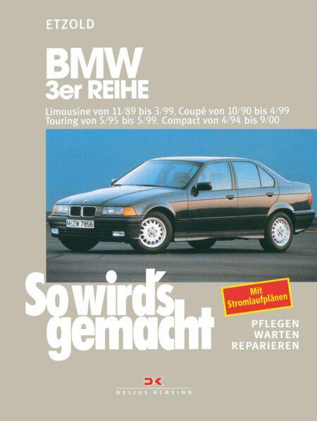 "So wird´s gemacht" zeigt technisch interessierten Neu- und Gebrauchtwagenbesitzern, wie ihr Fahrzeug funktioniert und welche Wartungs- und Reparaturarbeiten sie selbst durchführen können. In über 150 Bänden beschreibt die Handbuchreihe die gängigsten Pkw-Modelle und ist damit eine der umfangreichsten deutschen Autohandbuchreihen. BMW 3er REIHE (Typ E36) Limousine von 11/89 bis 3/99 Coupe von 10/90 bis 4/99 Touring von 5/95 bis 5/99 Compact von 4/94 bis 9/00 Benziner 316i 1,6 l / 73 kW (100 PS) M40 09/90-08/93 316i 1,6 l / 75 kW (102 PS) M43 08/93-09/00 318i 1,8 l / 83 kW (113 PS) M40 09/90-08/93 318i 1,8 l / 85 kW (115 PS) M43 08/93-05/99 318is/ti 1,8 l / 103 kW (140 PS) M42 10/91-01/96 318is/ti 1,9 l / 103 kW (140 PS) M44 01/96-09/00 320i 2,0 l / 110 kW (150 PS) M50/M52 01/90-05/99 323i/ti 2,5 l / 125 kW (170 PS) M52 06/95-09/00 325i 2,5 l / 141 kW (192 PS) M50 11/89-04/99 328i 2,8 l / 142 kW (193 PS) M52 01/95-05/99 Diesel 318tds 1,7 l / 66 kW ( 90 PS) M41 03/95-09/00 325td 2,5 l / 85 kW (115 PS) M51T 01/91-02/98 325tds 2,5 l / 105 kW (143 PS) M51S 06/93-05/99