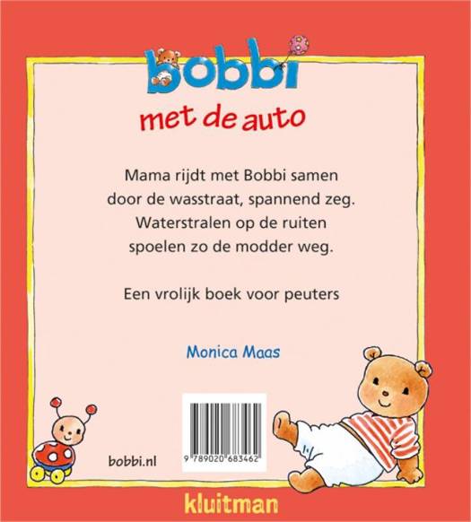 Mama rijdt met Bobbi samen door de wasstraat, spannend zeg. Waterstralen op de ruiten spoelen zo de modder weg.