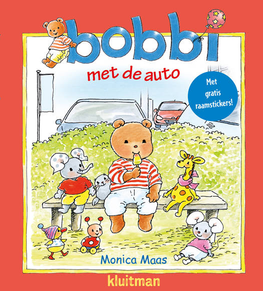 Bobbi heeft een tas met vakjes. Steeds pakt hij iets leuks eruit. Hé, een vel met mooie stickers! ‘Die plak ik op de autoruit.’