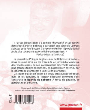 Le journaliste Philippe Léglise – ami de Bobosse s’il en fut – nous entraîne ainsi sur les traces de ce formidable ambassadeur du Beaujolais, depuis la charcuterie paternelle jusqu’aux plus grandes tables parisiennes, en passant bien entendu par le laboratoire d’Amorges à Saint-Jean-d’Ardières. De coups d’éclat en coups de cœur, sans oublier les coups durs et les canulars, le lecteur découvre comment s’est construite la légende de Bobosse. à force de gouaille, de générosité et de talent.