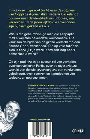 In Bobosse: mijn zoektocht naar de soigneur van Coppi gaat journalist Frederik Backelandt op zoek naar de identiteit van Bobosse, een verzorger uit de jaren vijftig die enkel onder zijn bijnaam gekend was/is. Wie is die geheimzinnige man die aanpapte met 's werelds bekendste wielrenners? Die vaak aan de zijde van de grote wielerkampioen Fausto Coppi verscheen? Die op vele foto's te zien is terwijl zijn ware identiteit nog nooit achterhaald werd? Op zijn pad kruist de auteur tal van verhalen over een verloren Parijs, over de mysterieuze wereld van de wielerverzorgers, een verdwenen velodroom, over sterren en kampioenen van weleer... en nog veel meer.