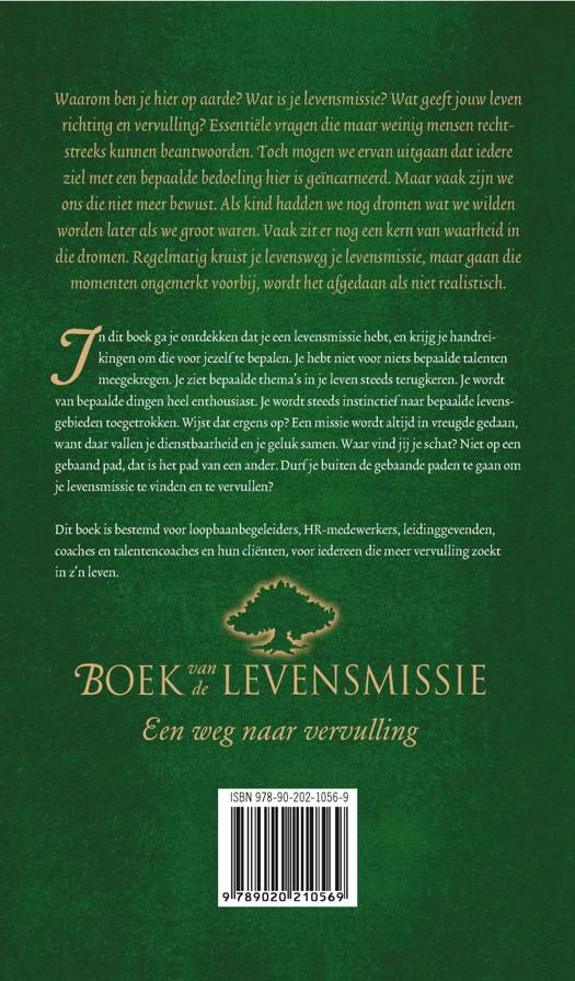 In dit boek ga je ontdekken dat je een levensmissie hebt. Je krijgt handreikingen om die voor jezelf te bepalen. Je hebt immers niet voor niets talenten meegekregen. Je ziet sommige thema's in je leven steeds terugkeren. Je wordt van bepaalde dingen heel enthousiast. Je wordt steeds instinctief naar bepaalde levensgebieden toegetrokken. Wijst dat ergens op? Een missie wordt altijd in vreugde gedaan, want daar vallen je dienstbaar zijn en je geluk samen. Waar vind jij je schat? Niet op een gebaand pad, dat is het pad van een ander. Durf je buiten de gebaande paden te gaan om je levensmissie te vinden en te vervullen?