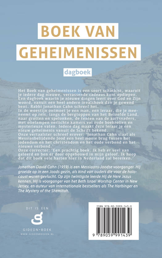 Het Boek van geheimenissen is een soort schatkist, waaruit je iedere dag nieuwe, verrassende cadeaus kunt opdiepen. Een dagboek waarin je nieuwe dingen leert over God en Zijn woord, vanuit een heel andere invalshoek dan je gewend bent. Rabbi Jonathan Cahn schreef het.
