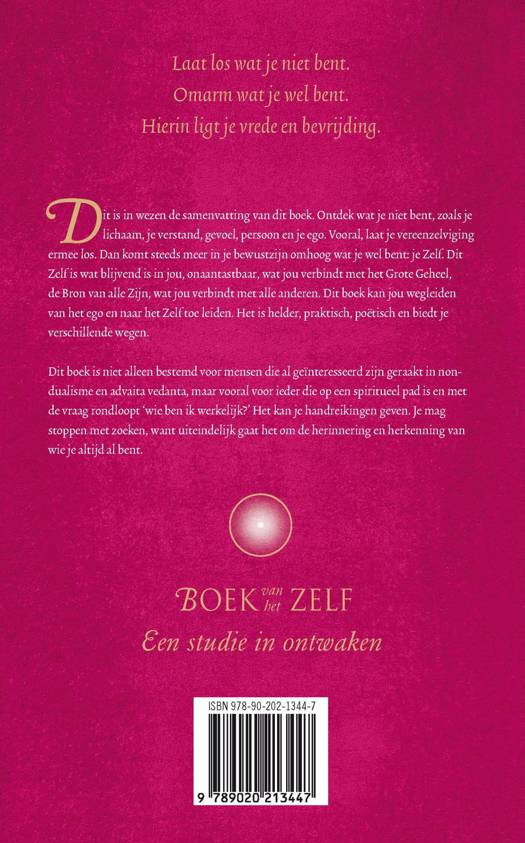 'Boek van het zelf' van Willem Glaudemans laat op een praktische manier zien hoe je ontdekt wat je niet bent; je bent niet je lichaam, je verstand, je gevoel, je persoon of je ego. Als je je vereenzelviging hiermee loslaat, komt vanzelf in je bewustzijn omhoog wat je wel bent: je Zelf. Het Zelf is wat blijvend is aan jou, wat jou verbindt met het Grote Geheel.