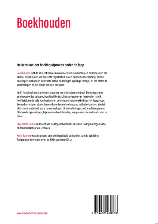 In dit handboek staat de ondersteuning van de student centraal. De transparante en stapsgewijze opbouw, begrijpelijke taal, het aangeven van leerdoelen na elk hoofdstuk en de vele voorbeelden en oefeningen vergemakkelijken het leerproces. Bovendien krijgen studenten en docenten online toegang tot het e-boek en allerlei didactisch materiaal, zoals de oplossingen bij de oefeningen, extra oefeningen met bijhorende oplossingen, bijkomende leerinhouden, een presentatie en invulstaten in Excel.